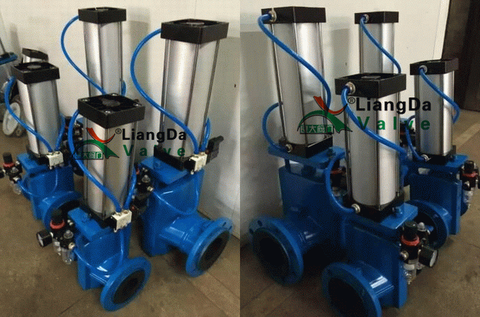 氣動頭通氣時,使閥桿向下運動來帶動上下壓板以壓縮套管進行關(guān)閉,反之即開啟。壓板在拉桿之間上下往復(fù)運動完成閥門開閉工作。